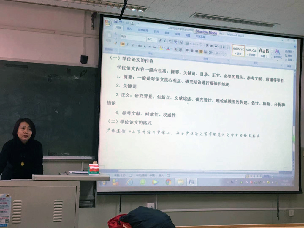 为保证学位论文质量,规范论文格式,按研究生院要求,日本做爱 于1月3日下午两点在1505举办2019届毕业研究生学位论文写作规范培训讲座,邀请日本做爱 在学科专业经验丰富的杨冬梅教授主讲,杨教授详细分析了研究生在论文写作过程中论文规范方面需要注意的问题及事项,并与学生一起学习了与学位申请相关的文件,让学生知悉学术不端行为检测、论文隐名评阅、论文答辩、论文抽审等学位申请环节的文件规定。